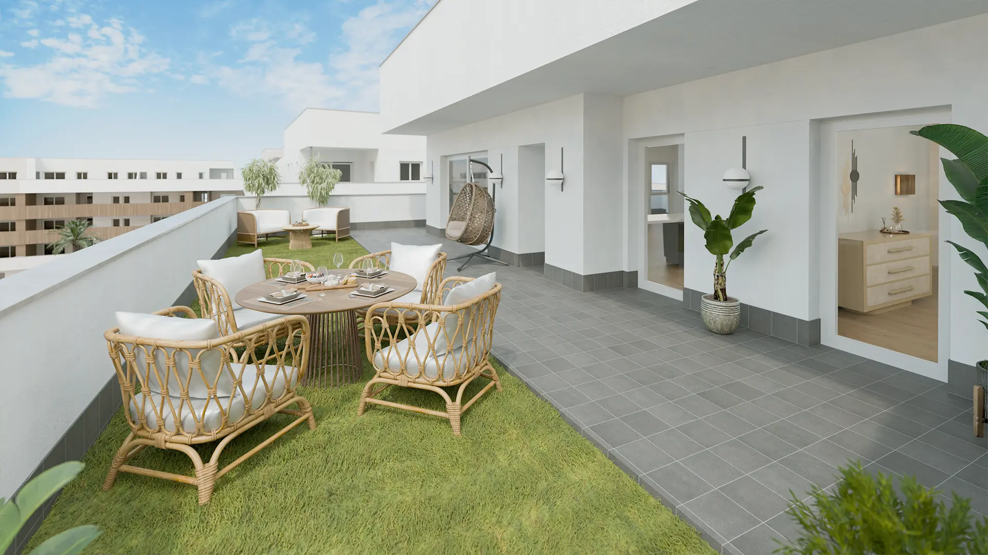 • Pisos con grandes terrazas: ideales para vivir la mayor parte del año en exteriores.