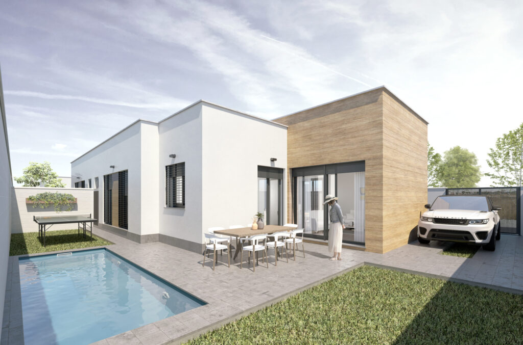Promoción de 6 fases de viviendas de obra nueva distribuida en una sola planta. Cuenta con jardín delantero y trasero, además de zona de parking, de 3 o 4 dormitorios, vestíbulo, salón, cocina, 2 baños completos.
